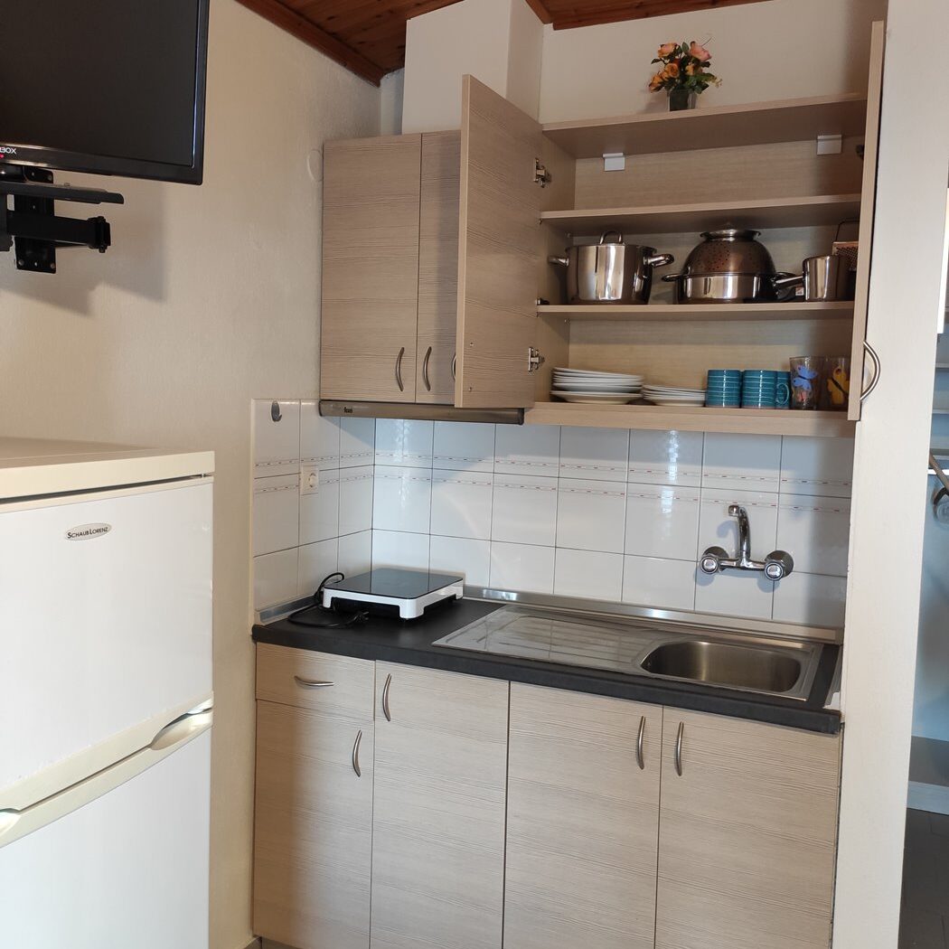 Διαθέτει κουζίνα εξοπλισμένη με ψυγείο, ηλεκτρικό μάτι, μαγειρικά σκεύη, ντουλάπα, μπάνιο και μπαλκόνι.